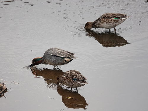| ノスリ[3月7日] 何か獲物を狙っているようでした。 | コガモ[3月7日] 採餌に夢中です。 | |