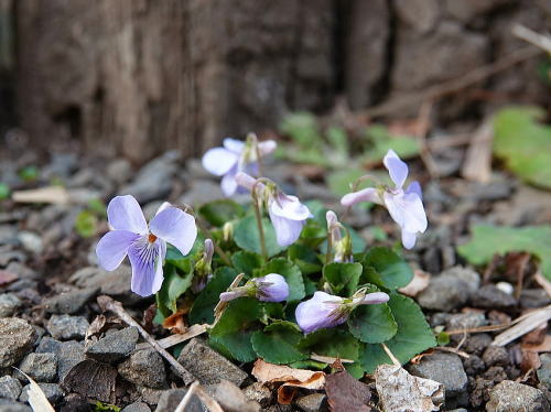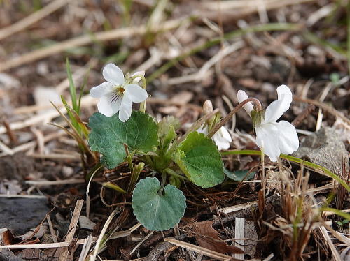 | アオジ[3月19日] 5羽が一緒に採餌していました。 | マルバスミレ[3月19日] 綺麗に咲いていました。 | |