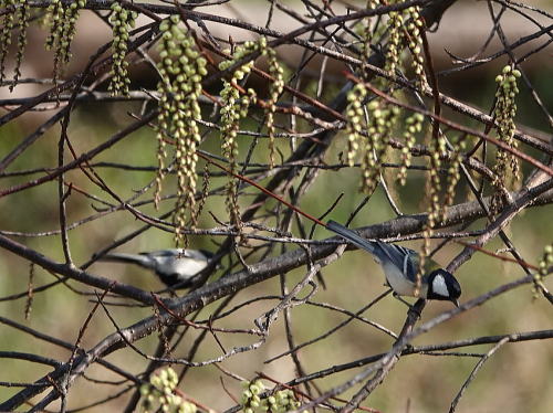 | オオシマザクラ[3月10日] オオシマザクラが咲き始めました。 | シジュウカラ[3月10日] 地面で採餌していましたが一休みです。 | |