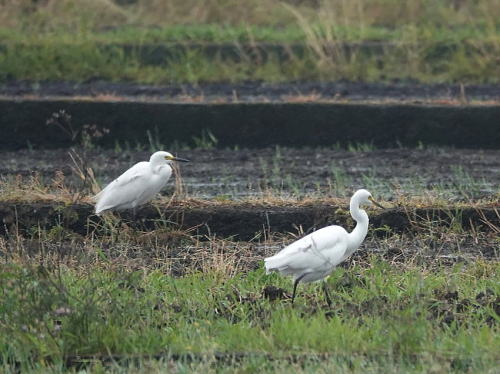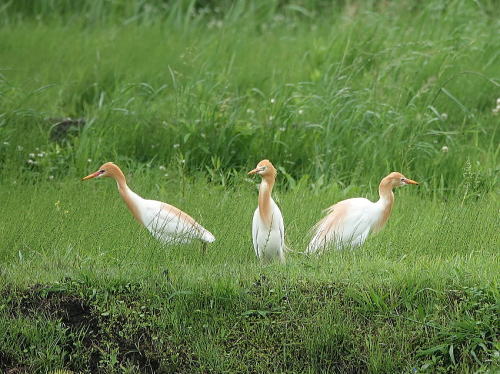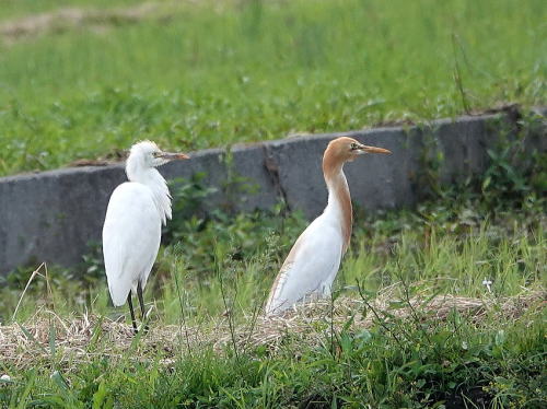 | アマサギ[5月21日] 奥のは婚姻色が強く出ています。 | アマサギ[5月21日] 歩き回っている時間が長いです。 | |