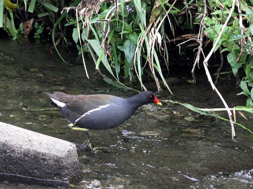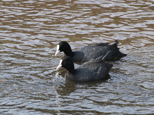 | コガモ[5月14日] 川で見掛けたのはこの1羽だけです。 | オオバン[5月14日] こちらはこの2羽だけでした。 | |