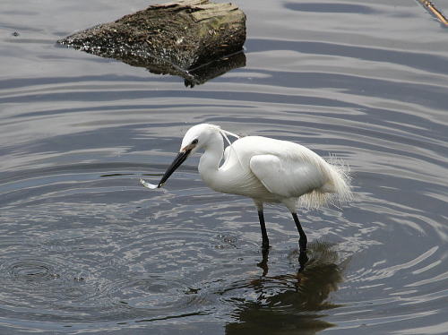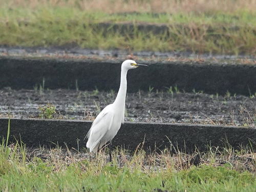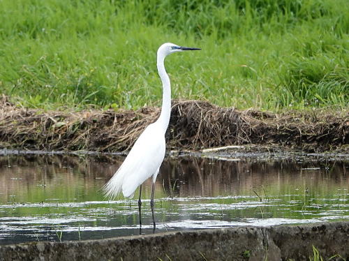 | チュウサギ[5月13日] 本日到着したのでしょう、3羽いました。 | チュウサギ[5月13日] 小雨の降る中、歩き回り採餌中でした。 | |
