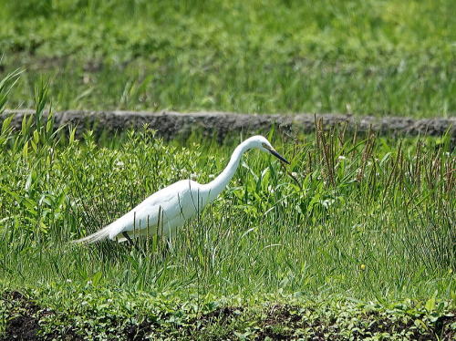 | アマサギ[5月21日] 5羽いました。 | アマサギ[5月21日] 歩きながら採餌している様子でした。 | |