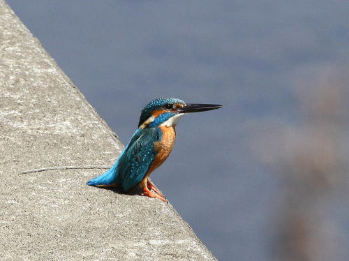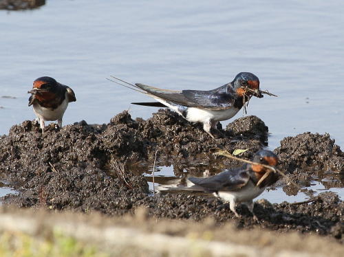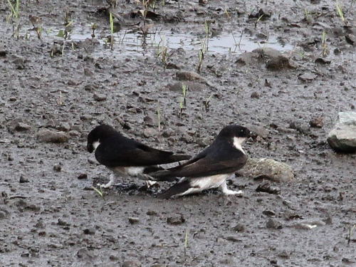 | バン[5月6日] 1羽だけです。いつも一緒だったもう1羽は何処に行ったのでしょう。 | イワツバメ[5月6日] 水溜りで巣材の泥などを集めていました。 | |