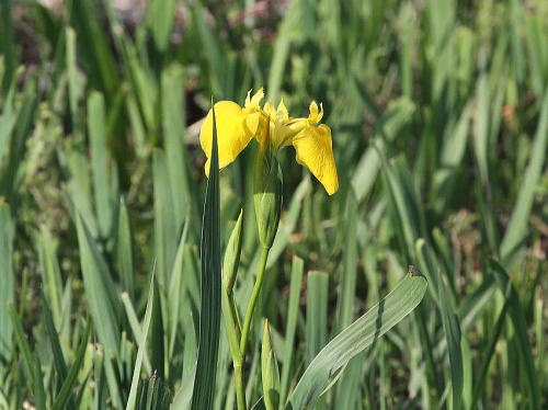 | キバナショウブ[5月1日] 一株だけ咲いていました。目立ちます。 | コチドリ[5月1日] 大きな声でピーピー鳴いていました。少し離れてもう1羽いました。 |