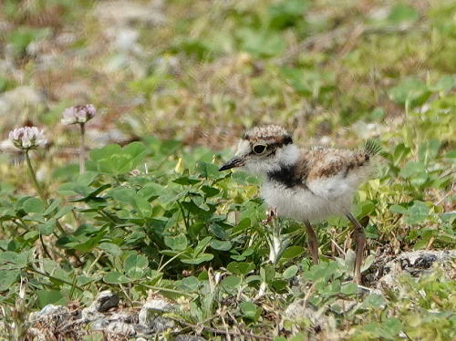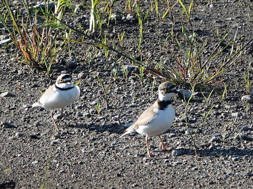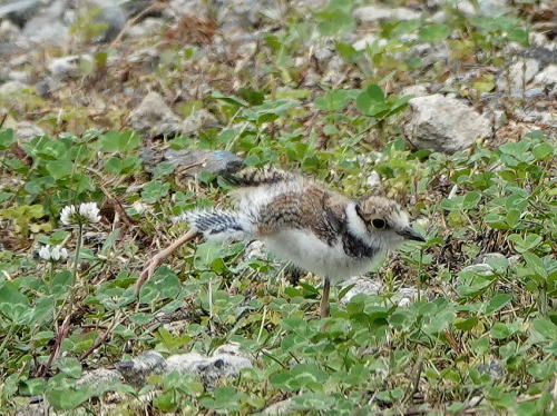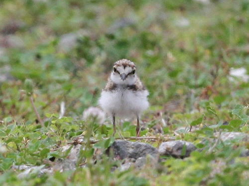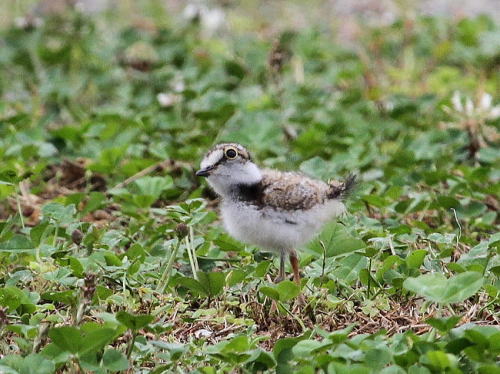 | コチドリ[5月18日] ヒナが見られると教えていただきました。梯子車の上で親が呼んでいました。 | コチドリ[5月18日] ヒナは3羽いました。 | |