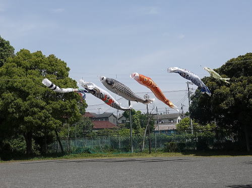 | 鯉のぼり[5月1日] 近くの公園で悠々と泳いでいました。 | ツグミ[5月1日] 数羽集まっていました。 | |
