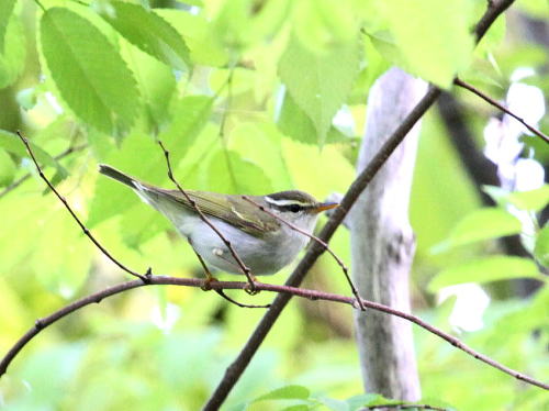 | センダイムシクイ[5月4日] 高い木の上から囀りが聞こえました。 | センダイムシクイ[5月4日] 2、3羽いたようですが、いつの間にか見えなくなりました。 | |