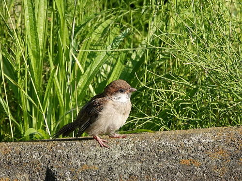 | スズメ[5月23日] 幼鳥がいました。親に餌を貰ったばかりです。 | カルガモ[5月23日] ヒナは変わらず1羽だけでした。 | |