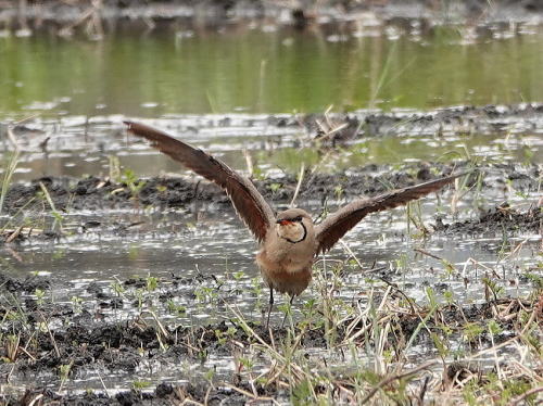 | ツバメチドリ[5月12日] オケラでも居たのでしょうか、顔から突っ込んでいきました。 | ツバメチドリ[5月12日] 落ち着いたところです。 | |