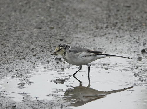 | カワセミ[8月17日] 飛び込みましたが獲物無しの帰還です。 | ハクセキレイ[8月17日] 幼鳥のようです。水溜りに飛んできた小さな虫を獲っている様子でした。 | |
