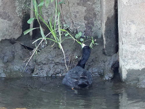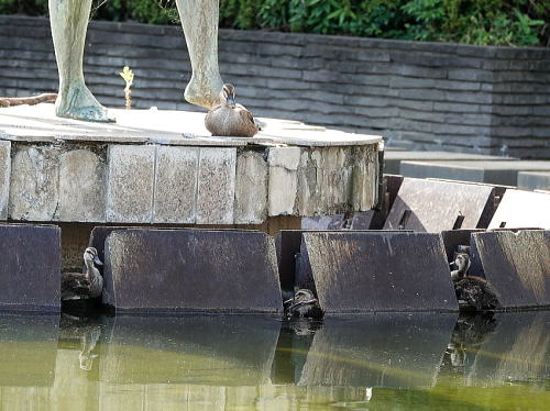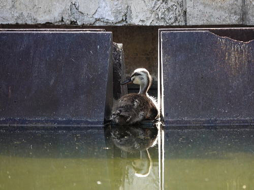 | カルガモ[8月5日] ヒナがどうしているか様子を見に行きました。4羽とも暑さを避けてか窪みに入っていました。 | カルガモ[8月5日] だいぶ大きくなりました。 | |