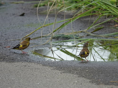 | カワラヒワ[8月8日] 道路に溜まった水を飲みに来ていました。 | ヤマホトトギス[8月7日] 先日の花は跡形もなく、少し離れた所に咲いていた花です。 | |