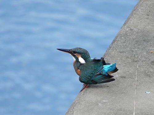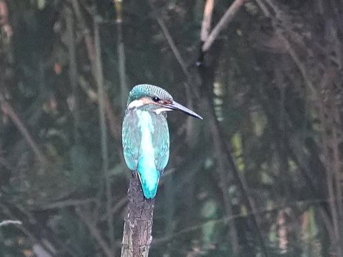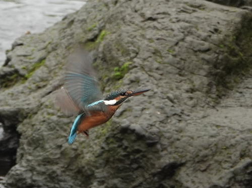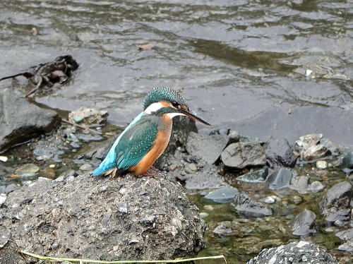 | チュウサギ[8月8日] 何かを狙っていましたが残念ながら獲れませんでした。 | カワセミ[8月8日] 珍しく河原の石の上に止まっていました。 | |