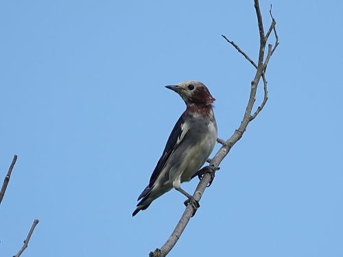 | コムクドリ[8月4日] 塒入りでしょうか、数羽が群れて飛んでいました。 | コムクドリ[8月4日] この場所が好きなようです。前にもここで見かけました。 | |