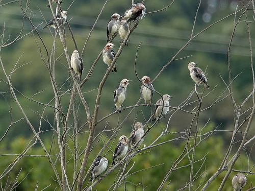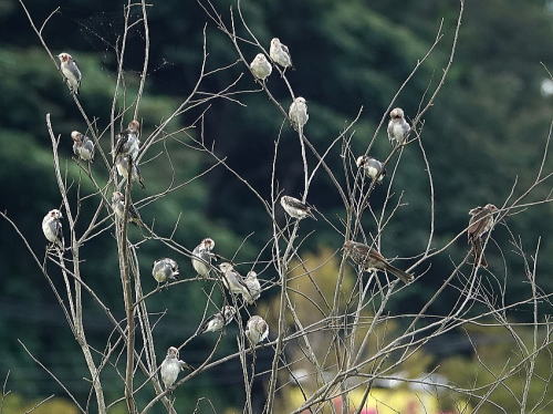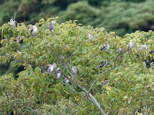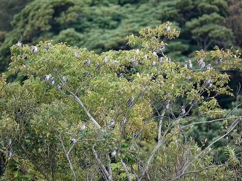 | コムクドリ[8月11日] 塒の木の左側です。 | コムクドリ[8月11日] 塒の木の右側です。動き回るので数えるのは難しいです。 | |