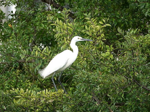 | カワセミ[8月20日] 2、3度水浴びした後羽繕いを始めました。 | コサギ[8月20日] 川を行ったり来たりしていました。 | |