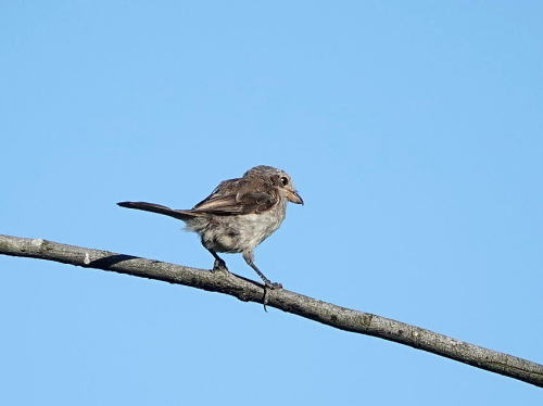 | オナガ[8月5日] 大きな蛾の幼虫を獲っていました。 | モズ[8月4日] 幼鳥です。 | |