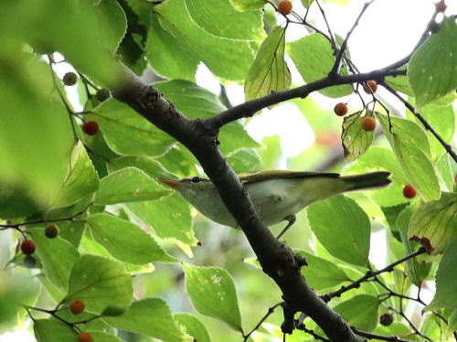 | オナガ[8月25日] 来ないかなとしばらく待って、やっと1羽だけ来てくれました。 | センダイムシクイ[8月24日] 昨日海寄りの公園に居たという情報があり行って来ました。 | |