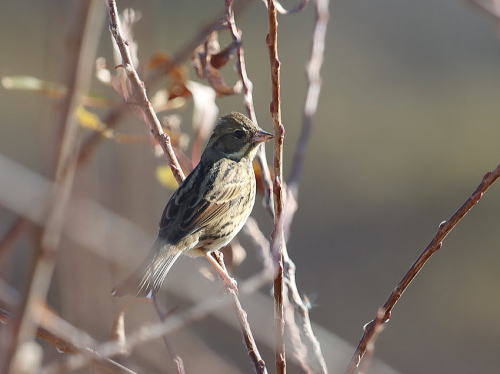 | ユリカモメ[12月23日] 10日に見て以来見かけませんでしたが、今日8羽いました。 | アオジ[12月23日] 昨年はここに数羽居ましたが1羽だけです。 | |