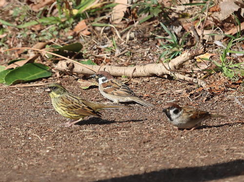 | アオジ[12月31日] 北国では雪、避けてやって来たのでしょうか。 | アオジ[12月31日] つい先日まで1羽しか居なかったのが急に増えました。 | |
