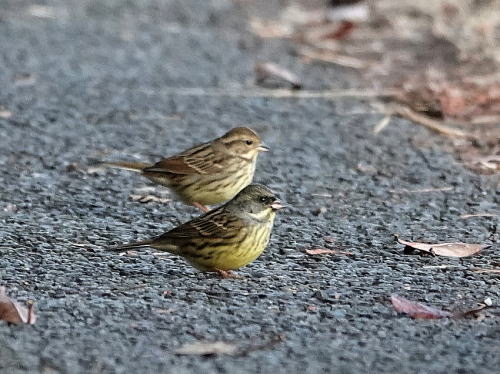 | ジョウビタキ[12月11日] 一粒を一瞬で食べてしまいます。 | ホオジロ[12月11日] 地鳴きしていました。 | |