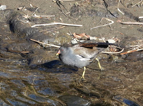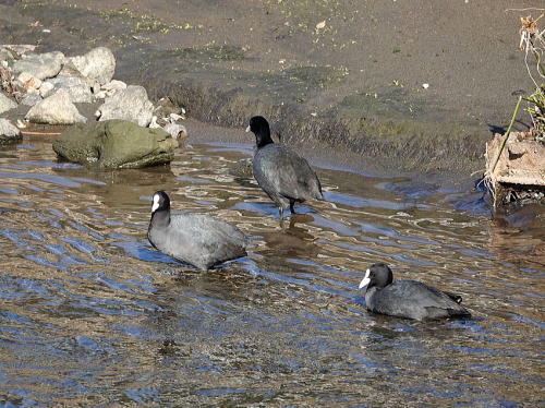 | バン[12月11日] このところ1羽しか見かけません。 | オオバン[12月11日] 増えて来ました。陸に上がって草をむしゃむしゃ食べています。 | |