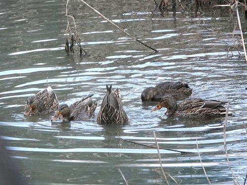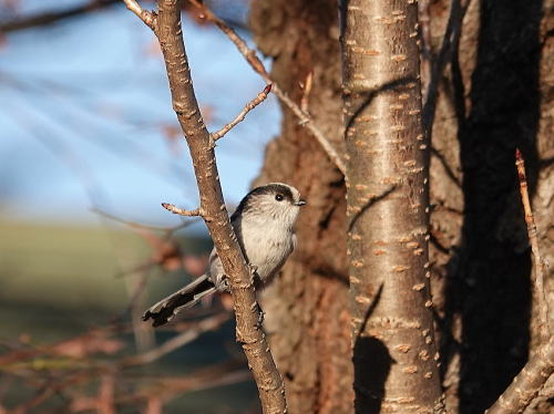 | マガモ[12月31日] ♀ばかり5羽いました。 | エナガ[12月30日] 他の鳥は全く見かけません。 | |