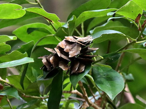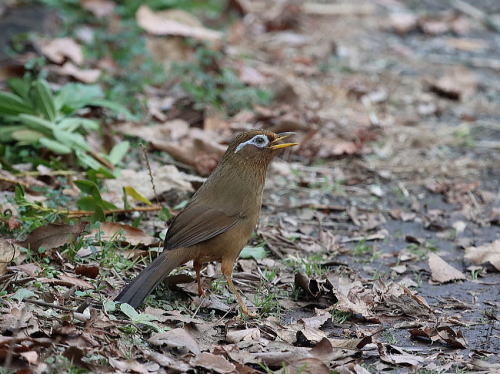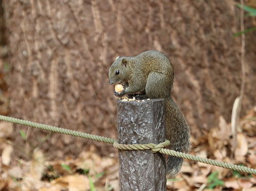 | タイワンリス[12月22日] 大きなドングリの実を皮をきれいにむいて食べています。 | ガビチョウ[12月22日] ガサガサ音がして目の前に飛び出して来ました。地鳴きです。 | |