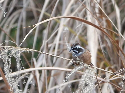 | ジョウビタキ[12月29日] このところまた見かけるようになりました。 | ホオジロ[12月29日] ゆらゆらしながらススキの穂を夢中で食べていました。 | |
