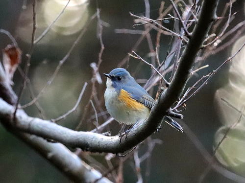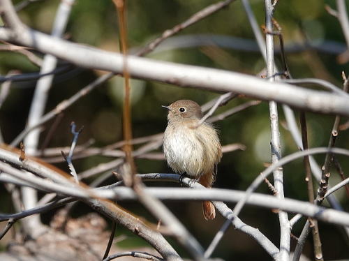 | ルリビタキ[12月13日] 来ているよとの情報を頂いて探していたのですが地鳴きの声ばかりでした。 | ルリビタキ[12月13日] 粘って待っているとやっと姿を見せてくれました。 | |