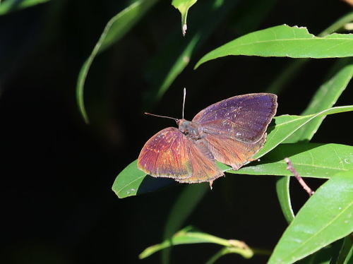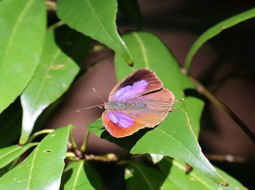 | ムラサキツバメ[12月12日] 越冬集団がばらけていました。暖かさに誘われて飛び出したようです。 | ムラサキツバメ[12月12日] ♂でしょうか。 | |