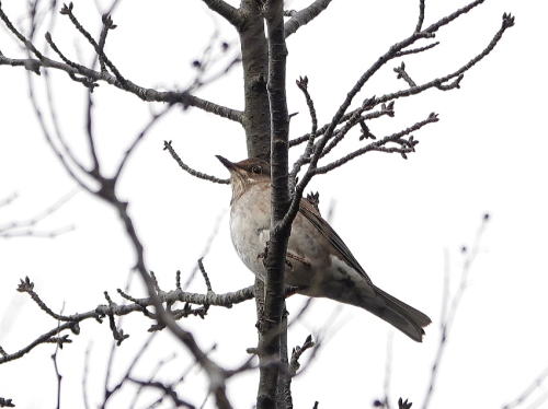 | ヤマガラ[12月17日] 高い木の天辺で囀っていました。 | シロハラ[12月17日] 他に2か所でシロハラの声がしていました。 | |