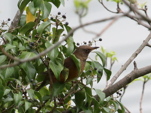 | アカハラ[4月25日] 地鳴きの声が聞こえました。囀ってはいないようです。 | キビタキ[4月24日] 今日は遠かったです。 | |