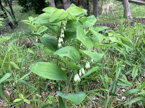 | シメ[4月21日] 数羽の群れで高い木の天辺辺りに飛んで来ました。 | アマドコロ[4月21日] 今年も沢山咲きました。 | |