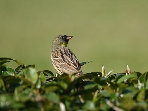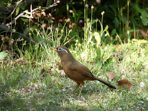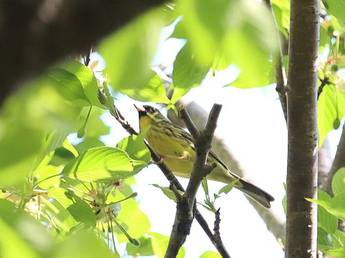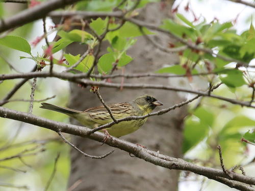 | ガビチョウ[4月11日] 植込みから飛び出してきました。 | アオジ[4月11日] 囀りでもない、地鳴きでもない声を出していました。 | |