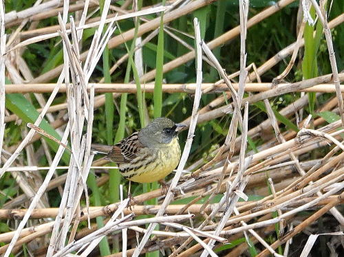 | キジ[4月17日] よく見かけます、2羽以上居るのかも。 | アオジ[4月17日] 対岸に居るのを見つけました。 | |