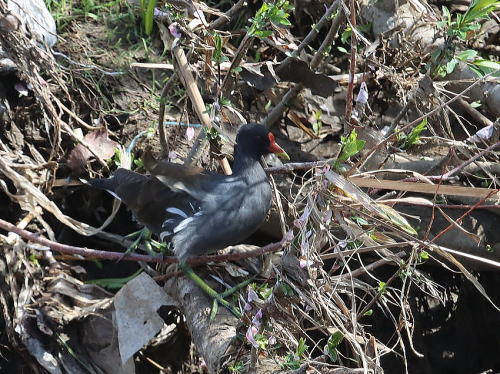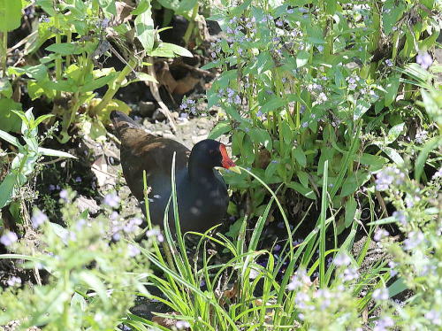 | コサギ[4月5日] じっと佇んでいました。 | バン[4月5日] 暫くぶりに見ました。額板が赤くなり夏羽になりました。 | |