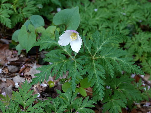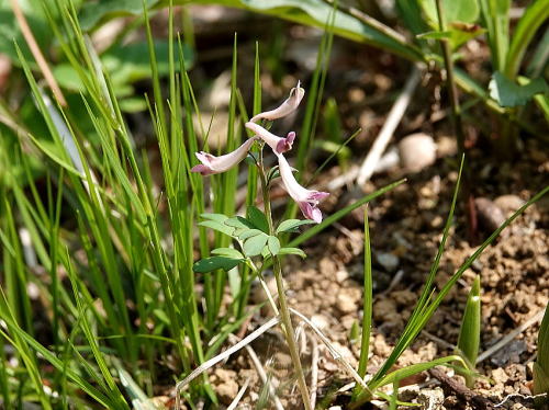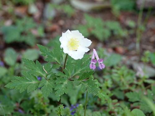 | ジロボウエンゴサク[4月7日] 一株だけ咲いているのを見つけました。 | イチリンソウ[4月7日] 花が少ないです。 | |