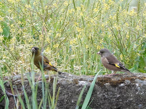 | バン[4月17日] 近くで子育てしてくれると嬉しいのですが。 | カワラヒワ[4月17日] ペアでしょうか。 | |
