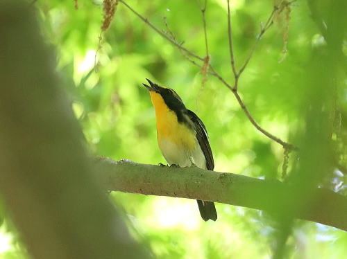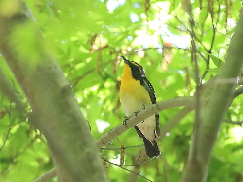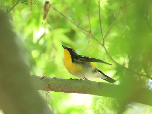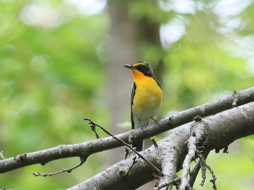 | キビタキ[4月22日] 今日も囀っていると教えて頂きました。 | キビタキ[4月22日] 囀りは聞こえませんでしたが、フッと飛んだのが目に入りました。 | |