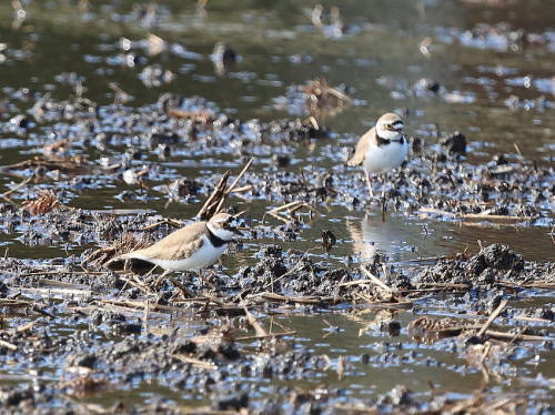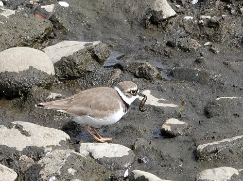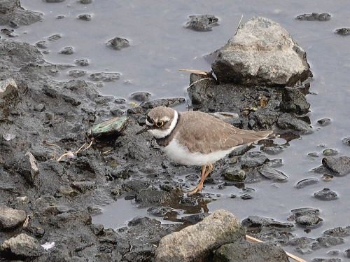 | カワセミ[4月6日] 獲った魚をプレゼントくわえにして何処かへ飛んで行きました。 | コチドリ[4月5日] 雨の後なので何か来ていないかなと探しました。北寄りの田圃に7羽居ました。 | |