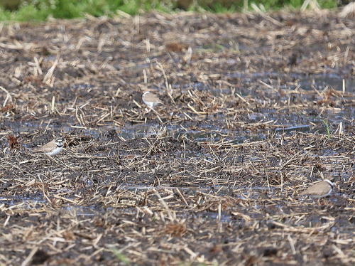 | コチドリ[4月5日] 中ほどの田圃には10羽居ました。でも静かでした。 | コチドリ[4月5日] 南寄りの田んぼには5羽いましたので、全部で22羽居ました。 | |
