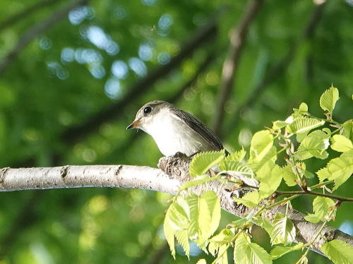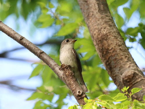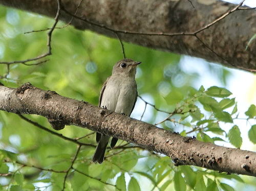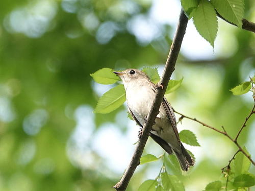 | コサメビタキ[4月23日] 急に賑やかな声が上から聞こえてきました。 | コサメビタキ[4月23日] 何だろうと探すとコサメビタキの囀りでした。 | |