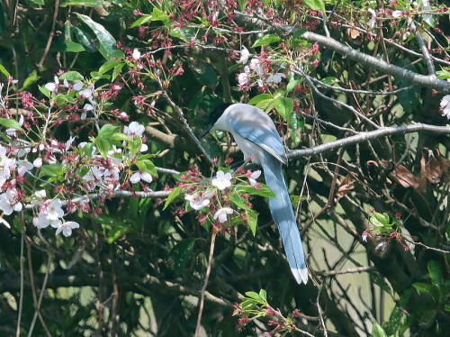 | アオゲラ[4月10日] 朽ち木を突いていました。 | オナガ[4月10日] このところ見かけませんでしたが数羽居ました。 | |