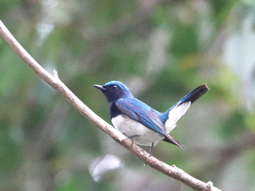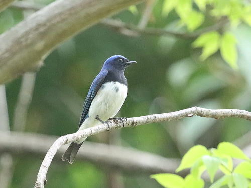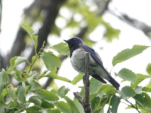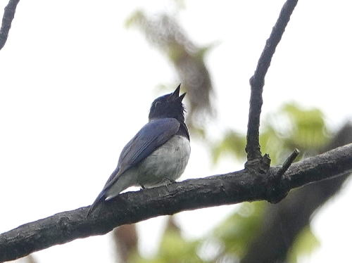 | オオルリ[4月21日] キビタキが居たと教えて頂きましたが、探しても見つからず帰りかけたところで囀りが聞こえました。 | オオルリ[4月21日] 暗くて木は茂っていて見つけるのが大変でした。 | |