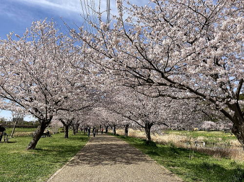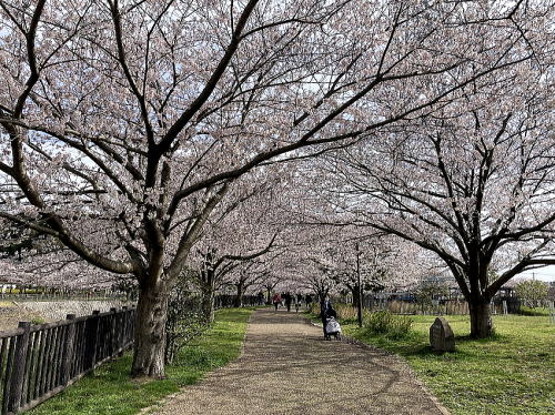 | 桜並木[4月1日] 右岸の桜、満開です。 | 桜並木[4月1日] 左岸の桜、こちらも満開です。 | |