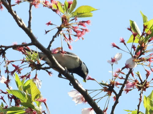| シジュウカラ[4月12日] 小さな小さな青虫を獲って食べていました。 | カワセミ[4月11日] 営巣中なのかあまり見かけません。 | |