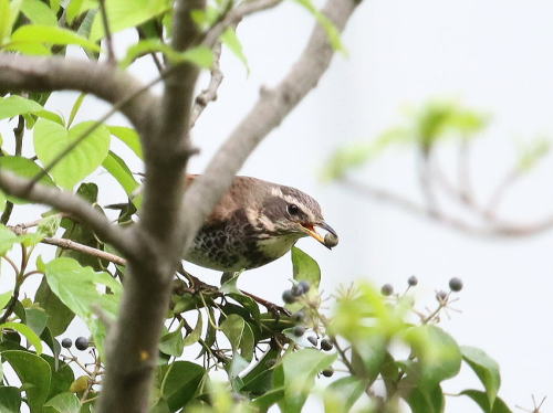 | ツグミ[4月25日] グラウンドに2羽居ました。 | ウグイスカグラ[4月25日] いつの間にかこんなに実がついていました。 | |