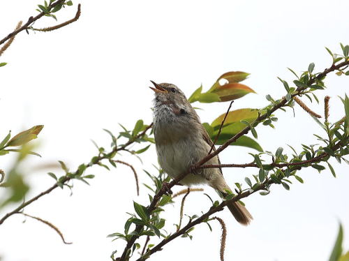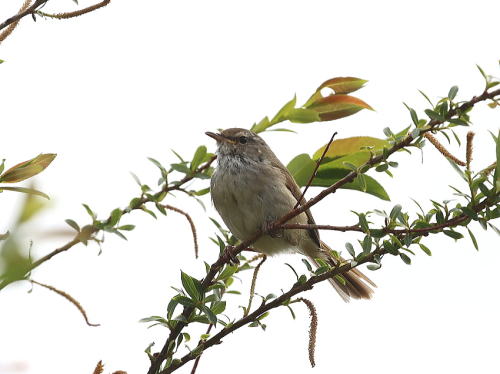 | ウグイス[4月16日] 直ぐ近くで囀りが聞こえました。 | ウグイス[4月16日] 柳の木の見やすい所に上がって来ました。 | |